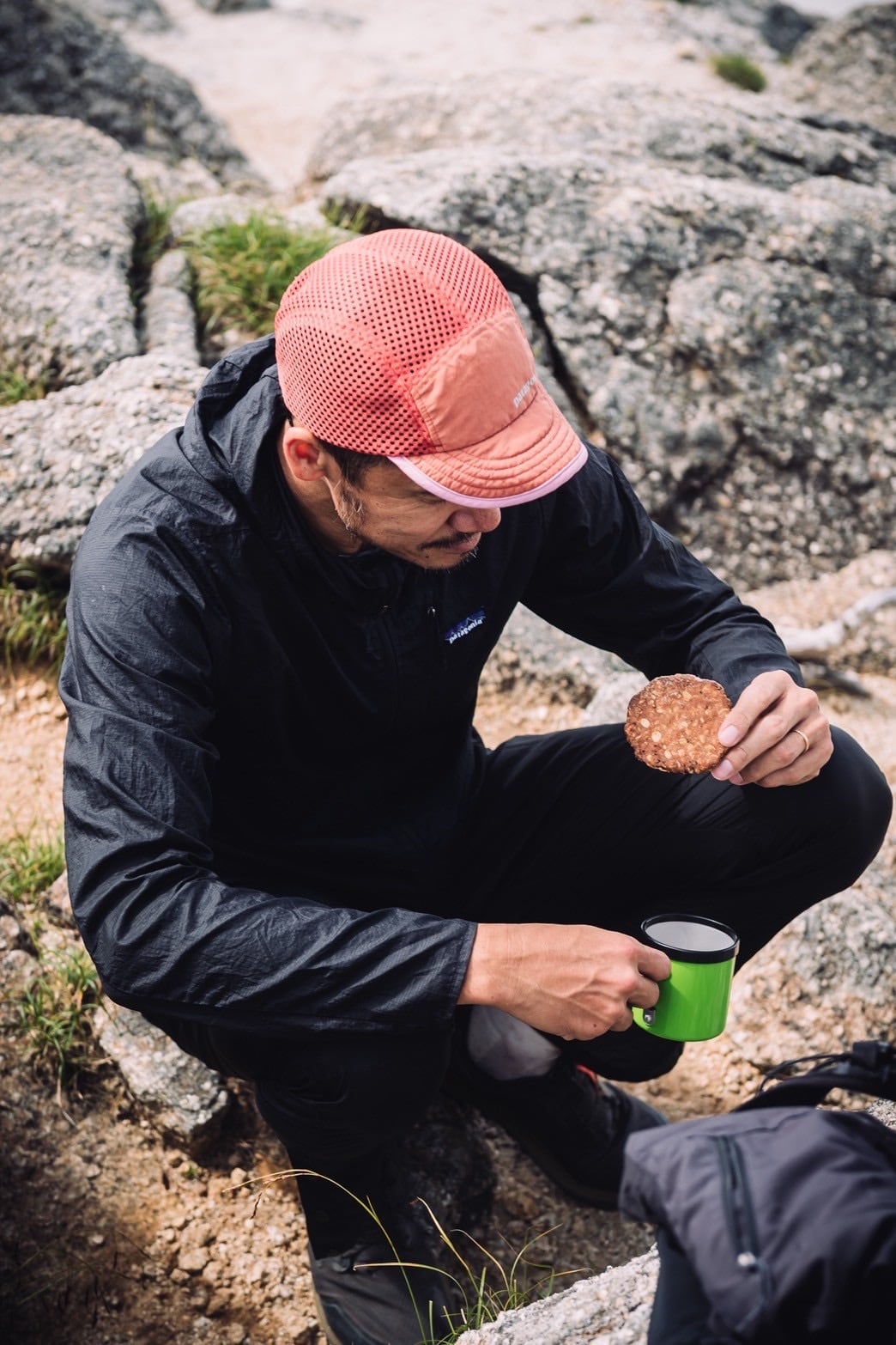 ウルトラランニングに挑むアンバサダーに刺激されてデザインした、通気性に優れ、丸めて容易に収納できる軽量な短めのつばの帽子。フロントパネルとつばは、漁網をリサイクルして海洋プラスチック汚染の削減に貢献する、ネットプラス・ポストコンシューマーリサイクル・ナイロン100%のファイユを使用。水分を弾くDWR(耐久性撥水)加工はPFASを意図的に使用せずに製造。頭頂部とバックパネルは風通しを促進するリサイクル・ポリエステル・メッシュ100%。フェアトレード・サーティファイドの工場で製造